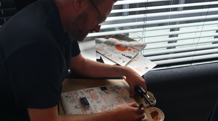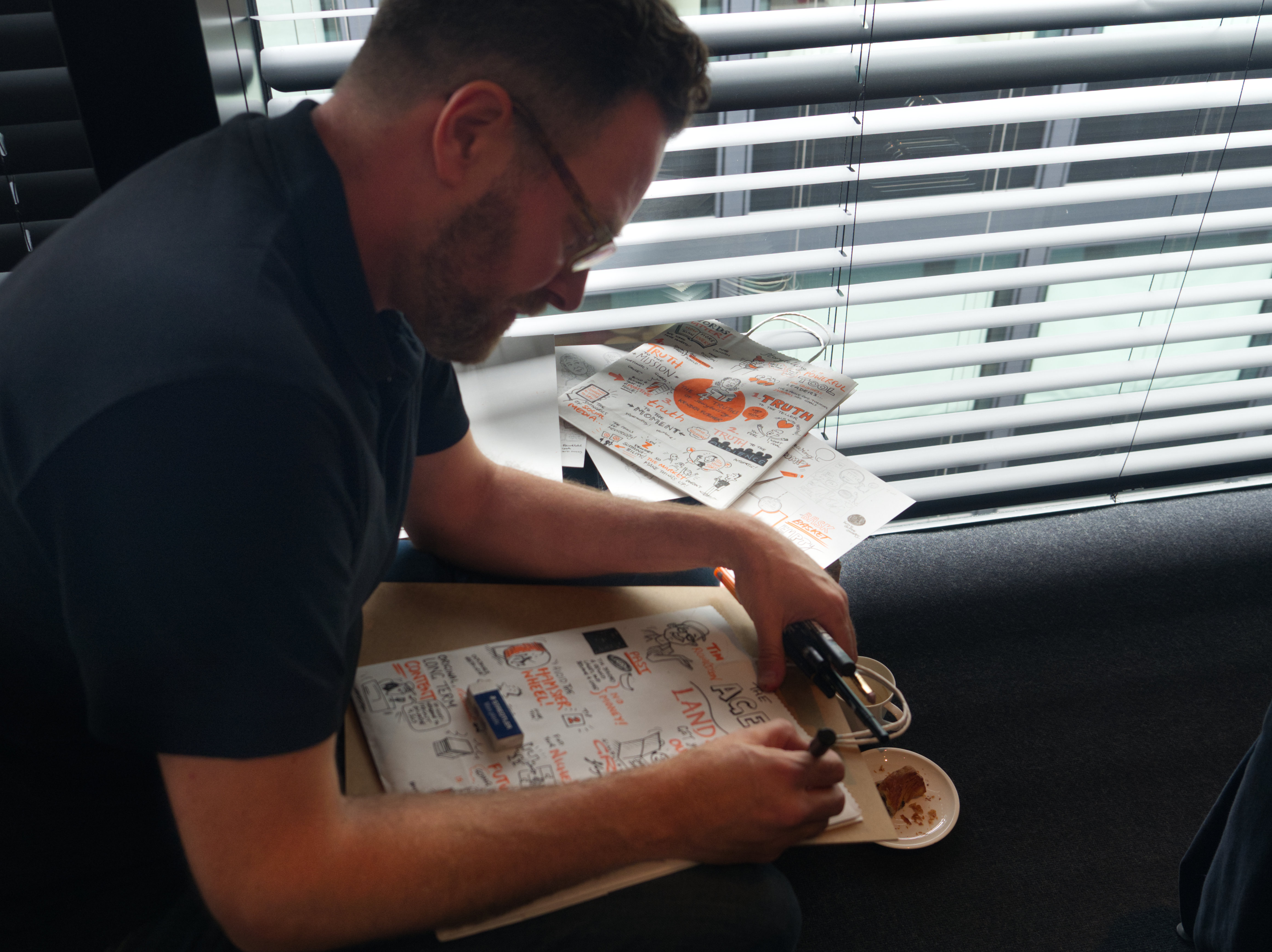 Illustrator and animator Chris Day captured the day's energy by live sketching on large "party bags," which became a real talking point. After six intense sessions, the heat was literally rising from his Posca pen!